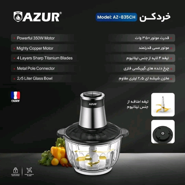 خردکن آزور مدل AZ-835 با طراحی مدرن و موتور قدرتمند ۳۵۰ وات مسی، انتخابی ایدهآل برای خرد کردن سریع و یکنواخت انواع مواد غذایی است. این دستگاه با مخزن شیشهای مقاوم ۲.۵ لیتری، ظرفیت مناسبی برای مصارف خانگی دارد و در برابر ضربه و حرارت نیز مقاوم است. سیستم چرخدندهای گیربکسی فلزی باعث افزایش دوام و قدرت عملکرد دستگاه شده و تیغهی ۴ لایه از جنس تیتانیوم، خرد کردن مواد سخت مانند گوشت، سبزی و یخ را بهراحتی انجام میدهد. خردکن آزور AZ-835 ترکیبی از قدرت، دوام و طراحی کاربرپسند است که آشپزی را سریعتر و لذتبخشتر میکند.